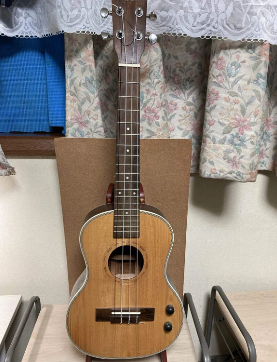 実は、このウクレレは生音はあまり良くありません。しかし、なぜかライン録り(ピックアップを通してアンプや録音機器に音を送る)をすると、非常にいい感じのサウンドになるんです!この「ラインの音の良さ」のおかげで、レコーディングや配信での使用頻度は高め。