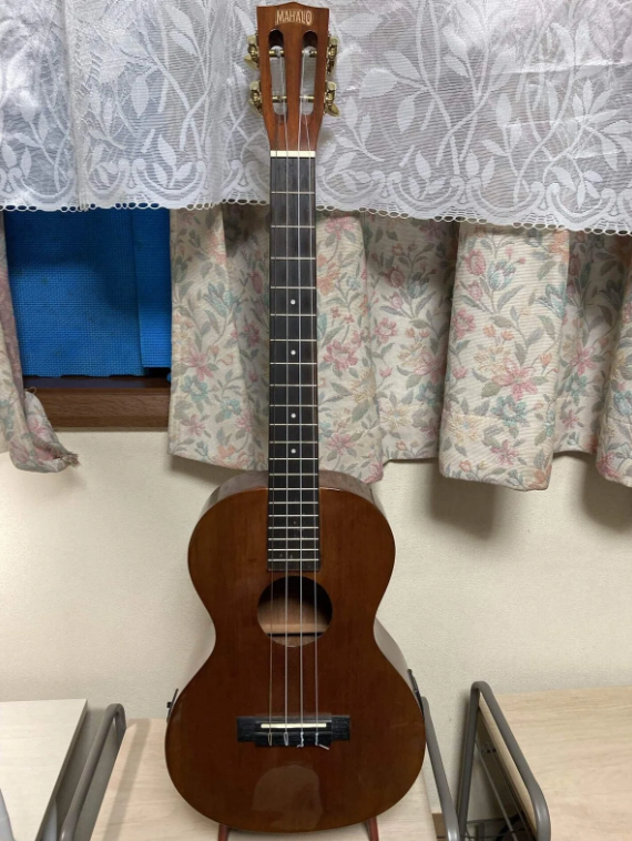 MAHALOというと、2,500円くらいの安価なウクレレというイメージが強いかもしれませんが、1万円以上の価格帯のモデルは、品質も結構いいんです。私が持っているこのバリトンウクレレは、ピックアップとチューナーが内蔵されていて使い勝手が抜群!音もそこそこ良いので、バリトンサイズながらも愛用している一本です。